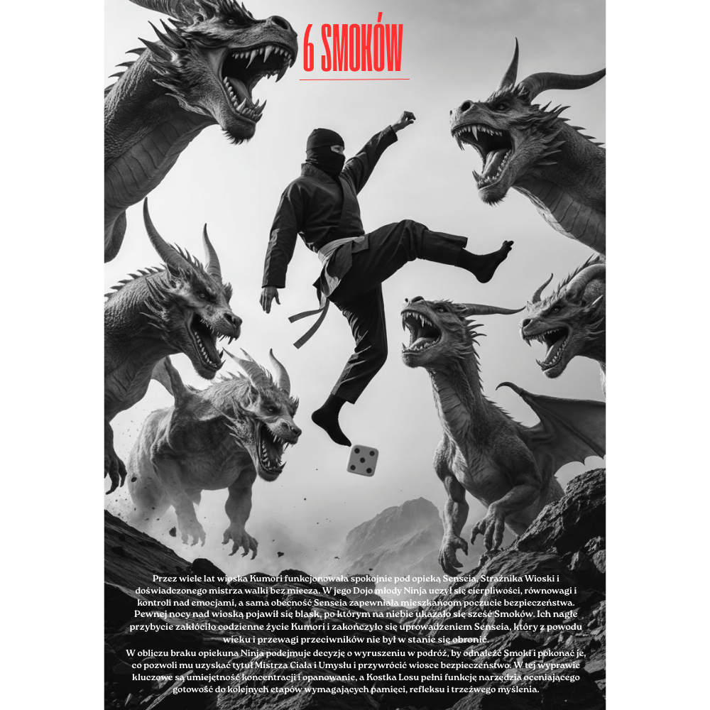 Wariant standard to trening Ninja – spokojniejsze wejście i nauka panowania nad reakcjami. Wariant PRO to pełna droga mistrzostwa. Gra jest dynamiczna, angażująca i potrafi wywołać dużo śmiechu. Brak kostki? Można użyć aplikacji lub wywoływanych liczb.