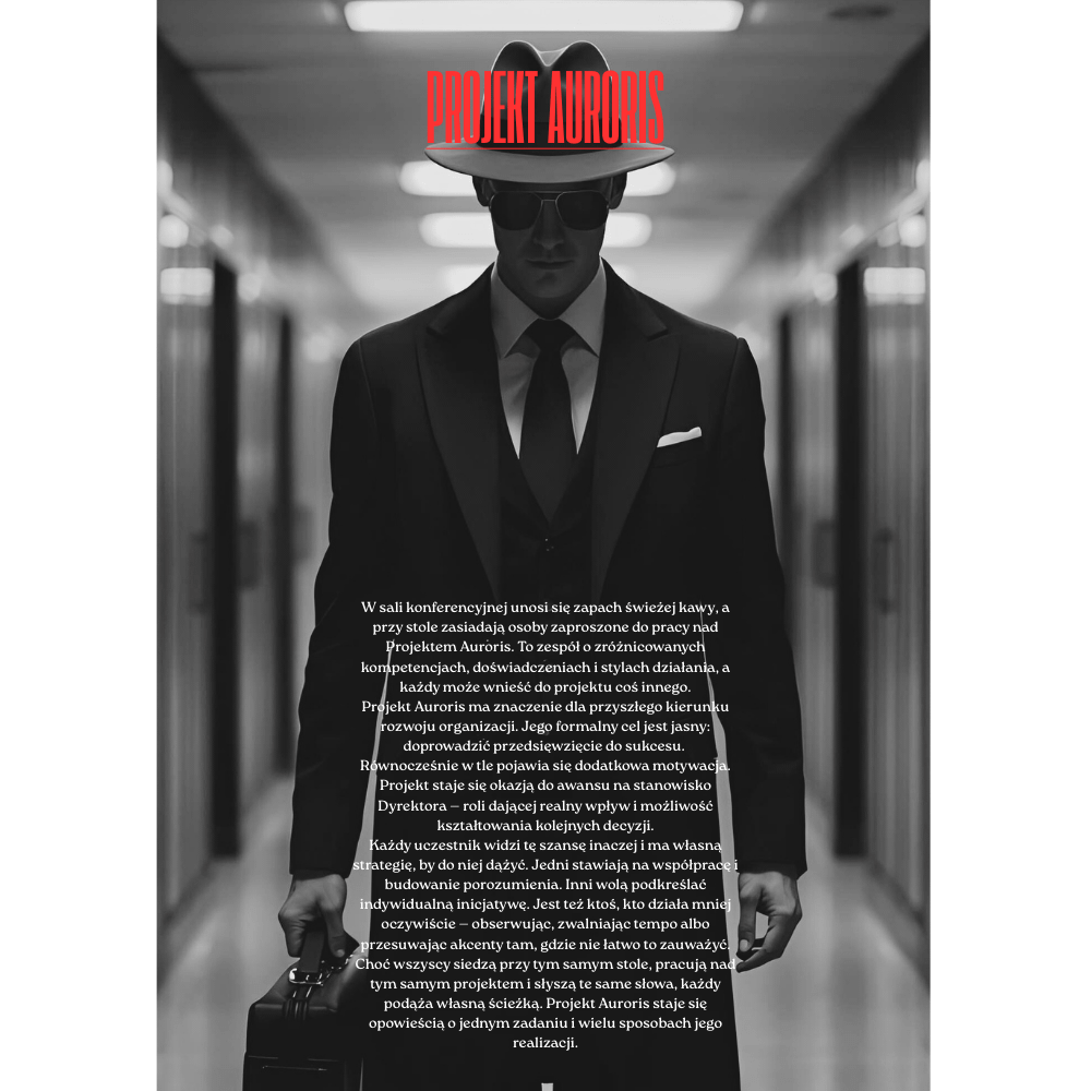 Wcielacie się w pracowników dużej korporacji, którzy wspólnie realizują strategiczny projekt. Oficjalnie wszystkim zależy na sukcesie zespołu i zadowoleniu zarządu. Każdy gracz ma jednak własny, ukryty cel oraz rolę, która wpływa na sposób działania podczas rozgrywki. Wśród uczestników znajduje się również osoba, której zależy na przeszkodzeniu w realizacji projektu i subtelnym kierowaniu go na skraj porażki.